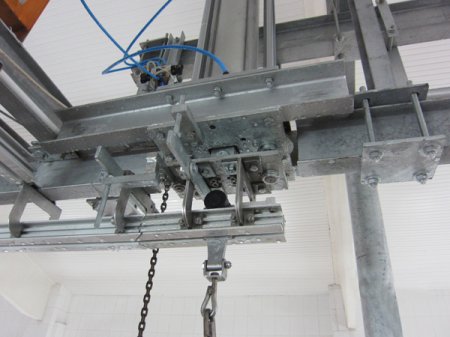 Derisi yüzülmüş ve paçası ayrılmış arka ayak, eklem yerinden kanca takılarak