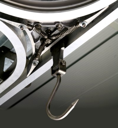 Pulleys are guided right or left by moving the arm right or left at the direction the hook comes.